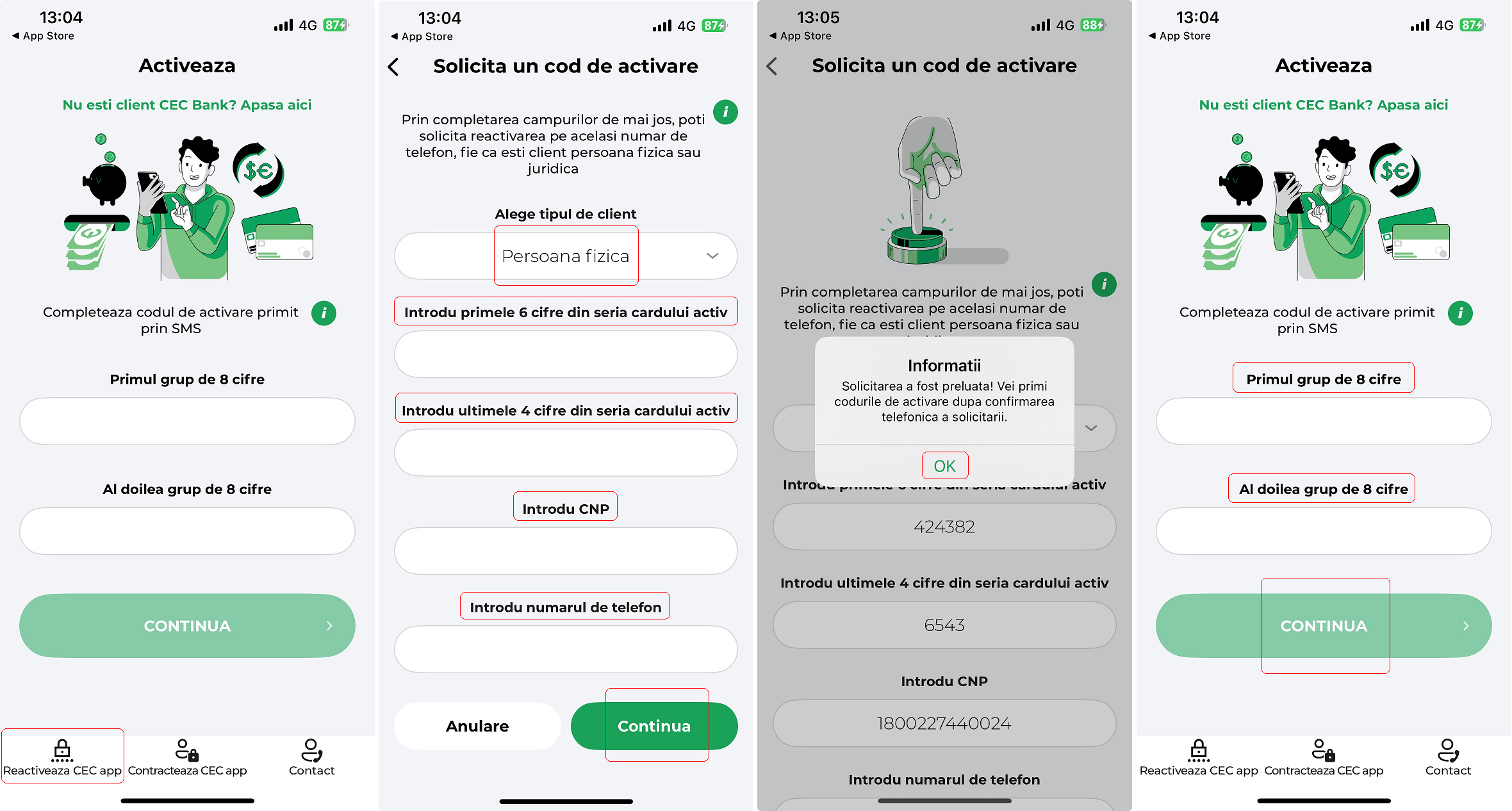 Poți reseta online PIN-ul aplicației Mobile Banking dacă ai un card bancar activ și ai în continuare acces la numărul de telefon asociat contului tău CEC Bank